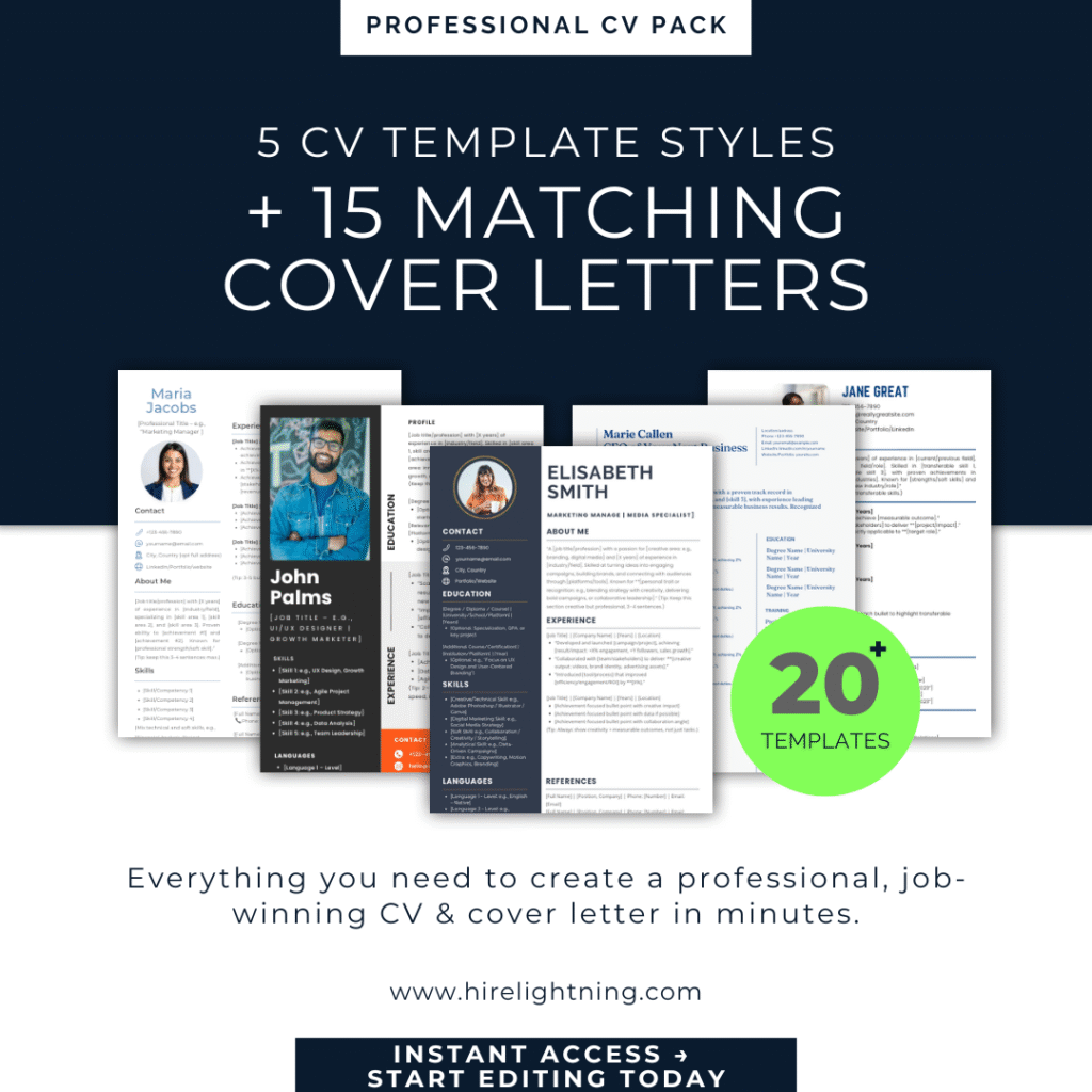 Get the Complete CV Template Pack today and start creating your professional CV in minutes.